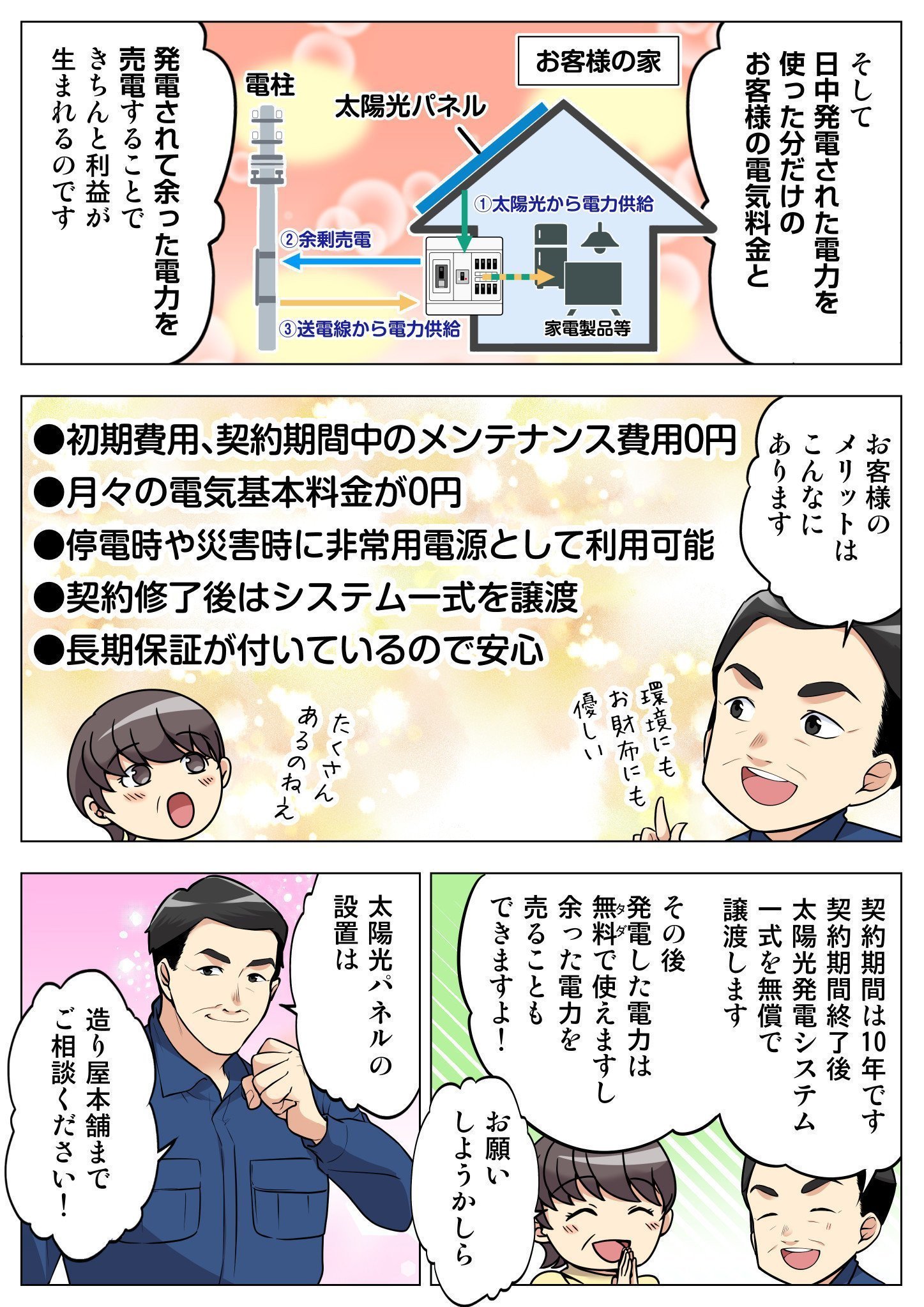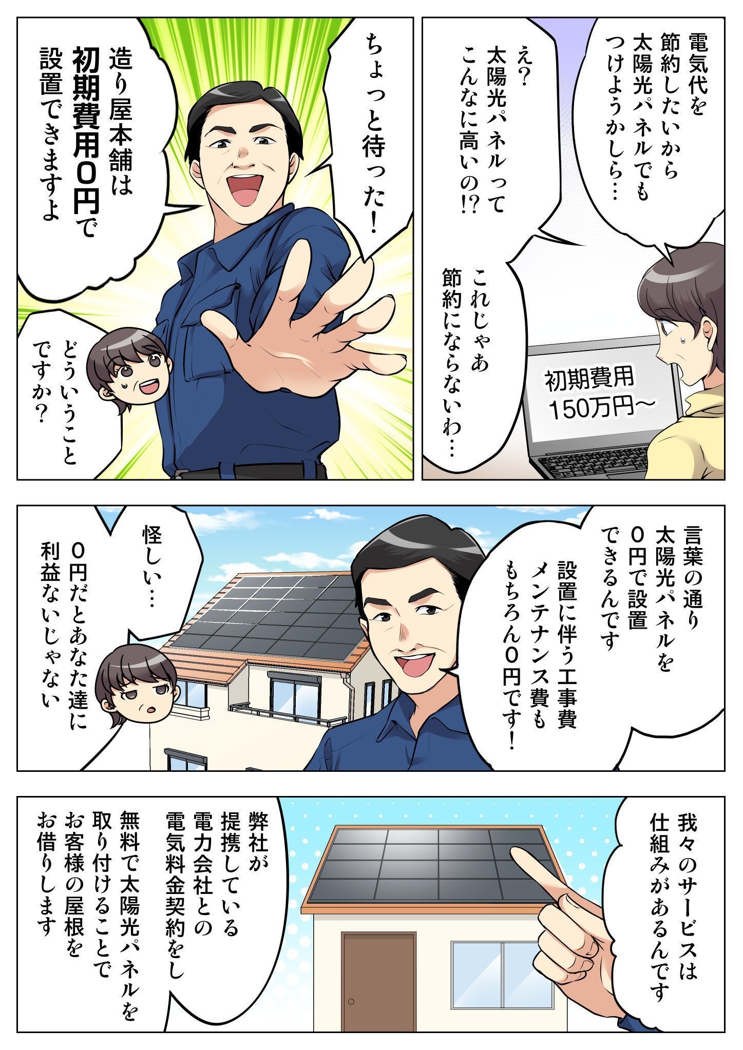 マンガで紹介!太陽光発電システム0円設置のしくみ